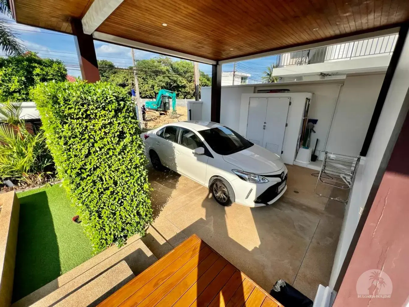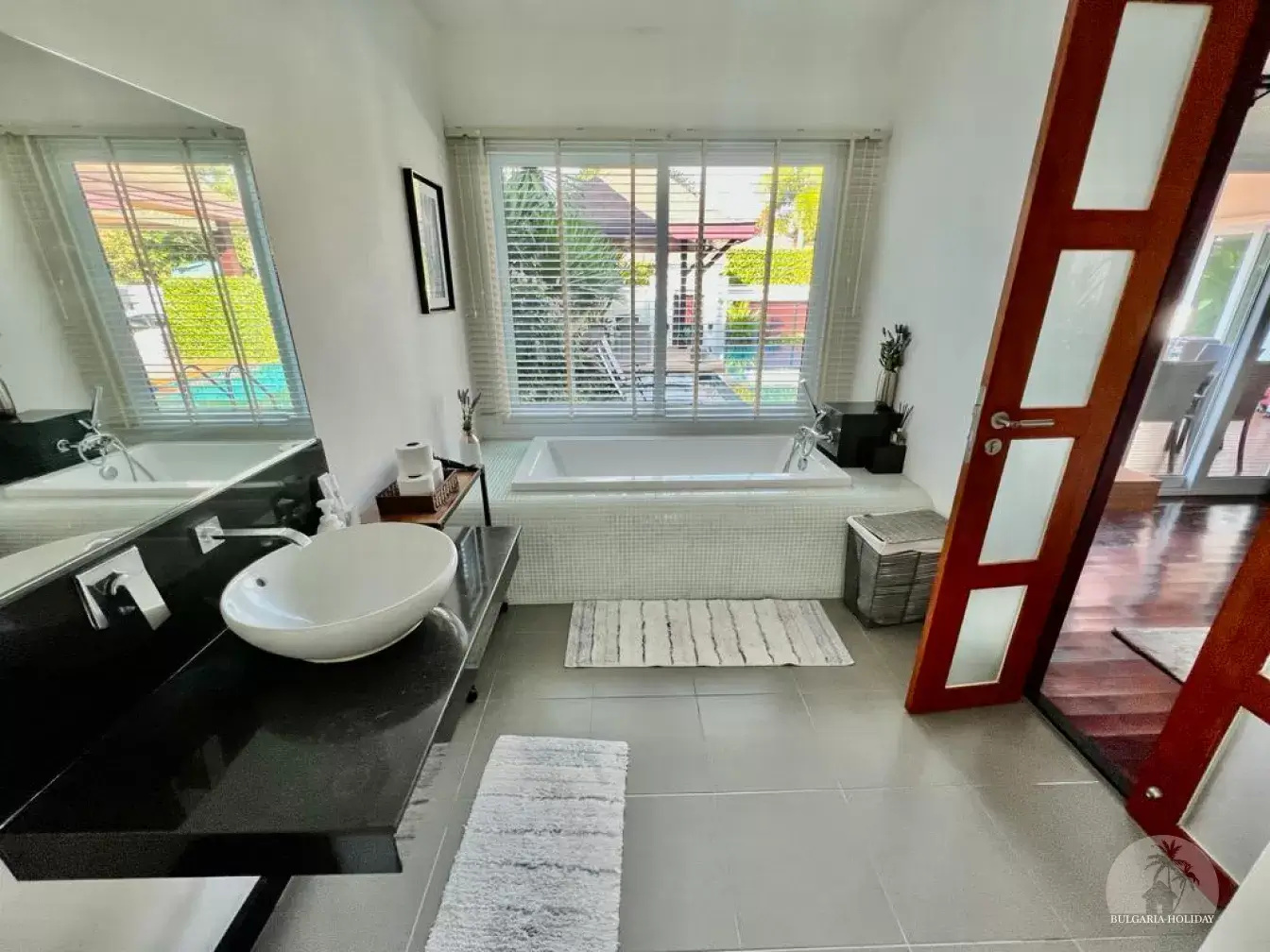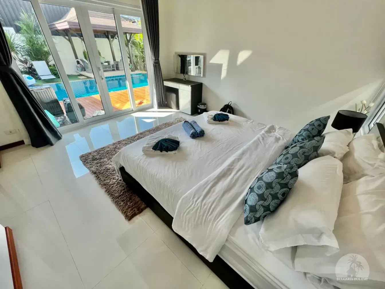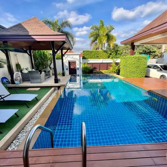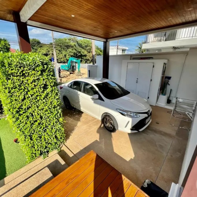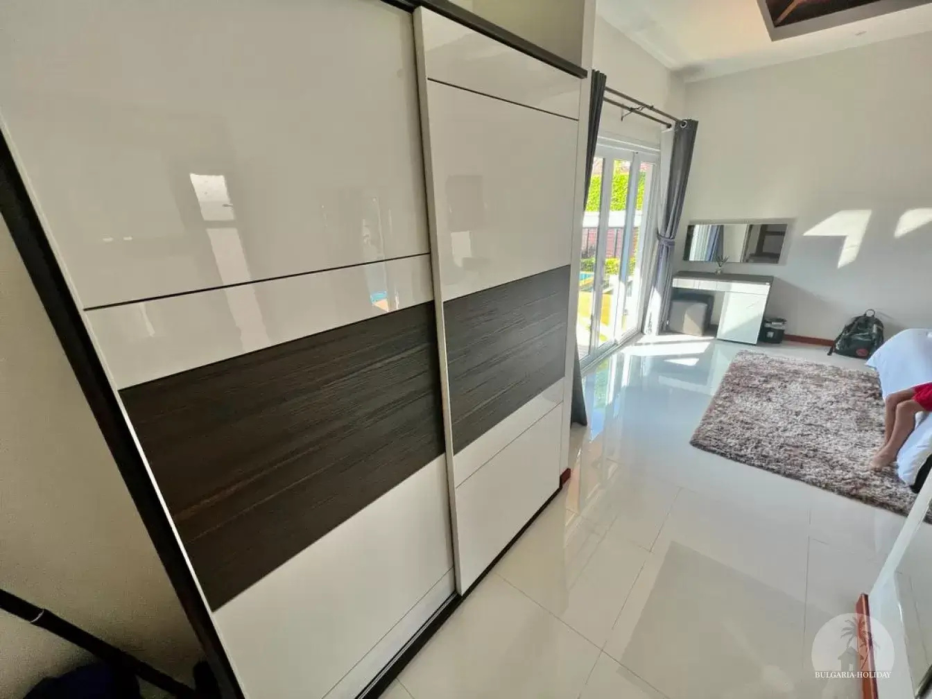Outside, you can enjoy the beautiful tropical garden with outdoor lounge and barbecue. The pool is huge, 4 by 8 metres with automatic LED lighting at night for special scenery!