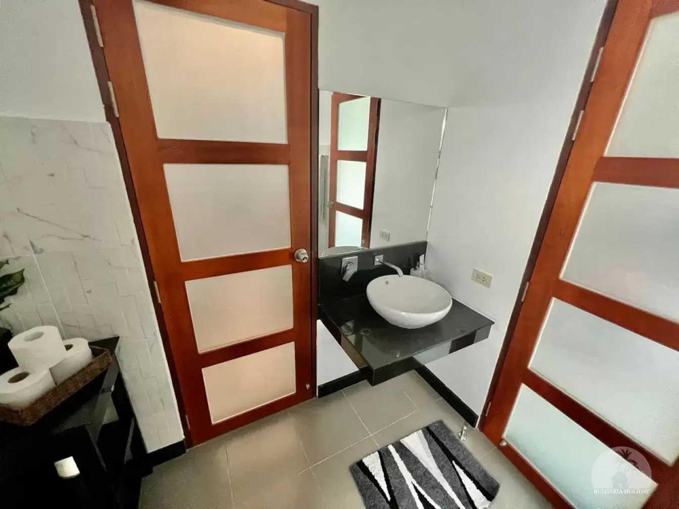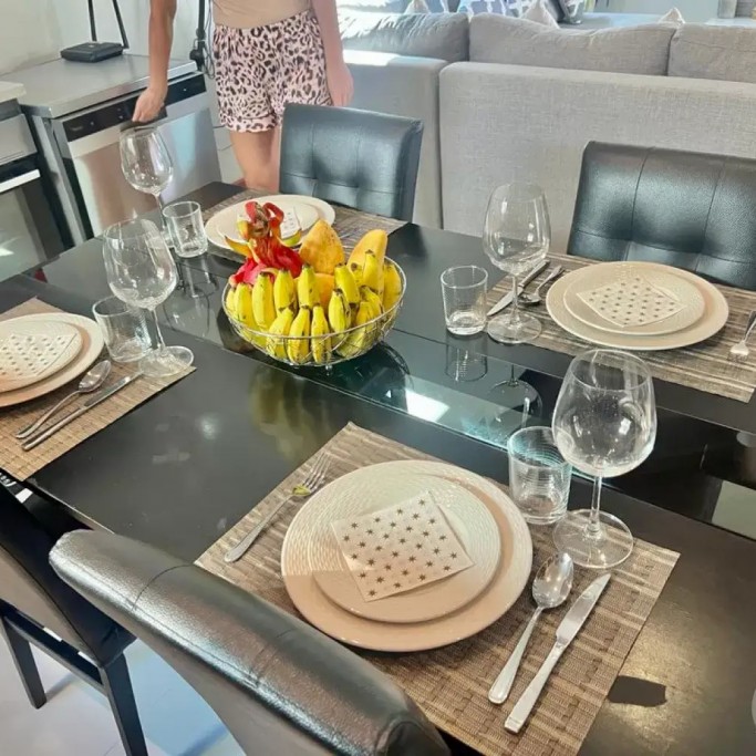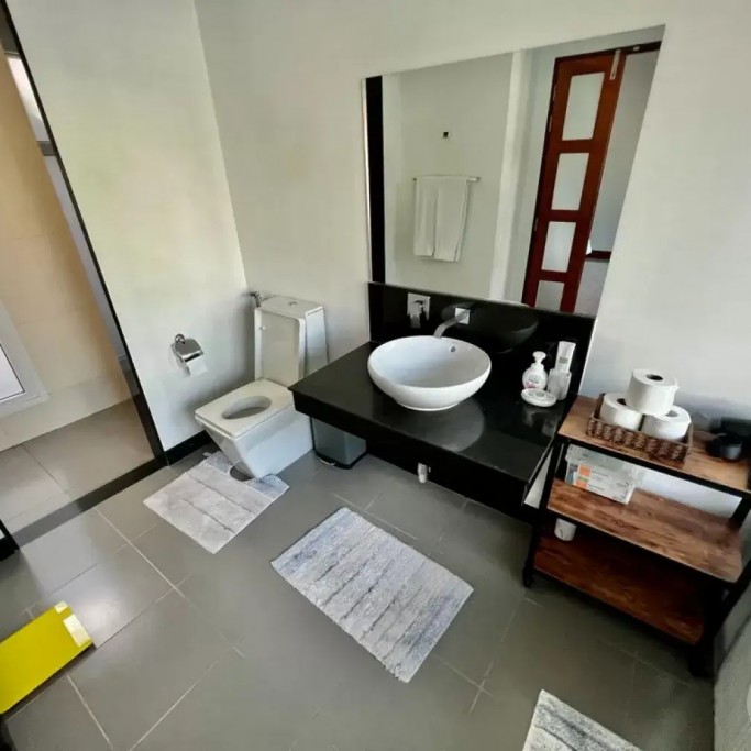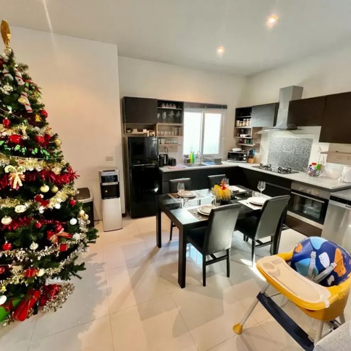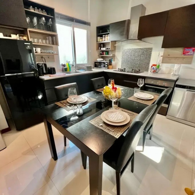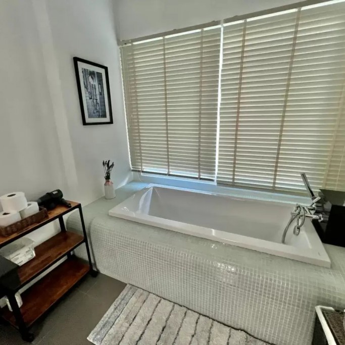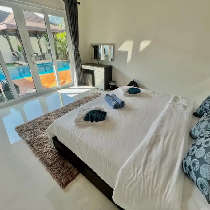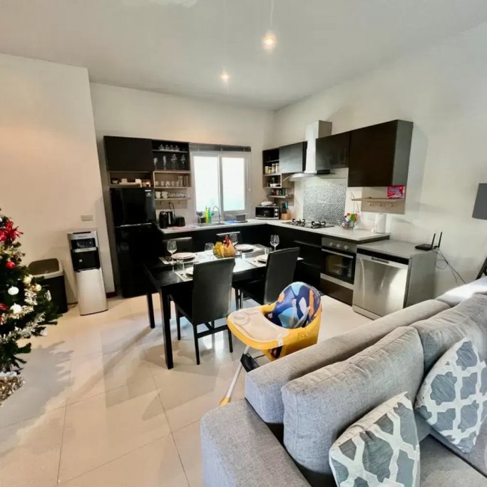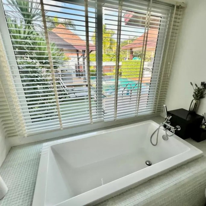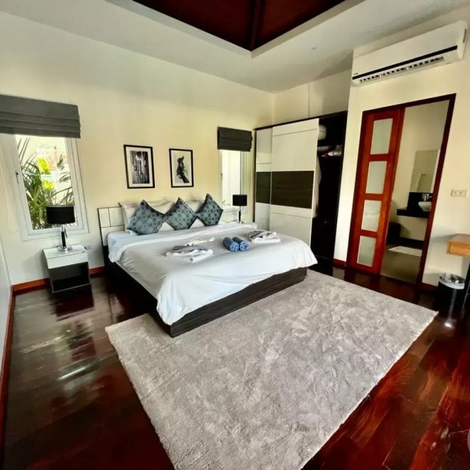 The air-conditioned living room has a large sofa and you can enjoy Netflix on the 55" TV. We also provide a luxury Harman Kardon Bluetooth speaker so you can enjoy music anywhere in the villa!