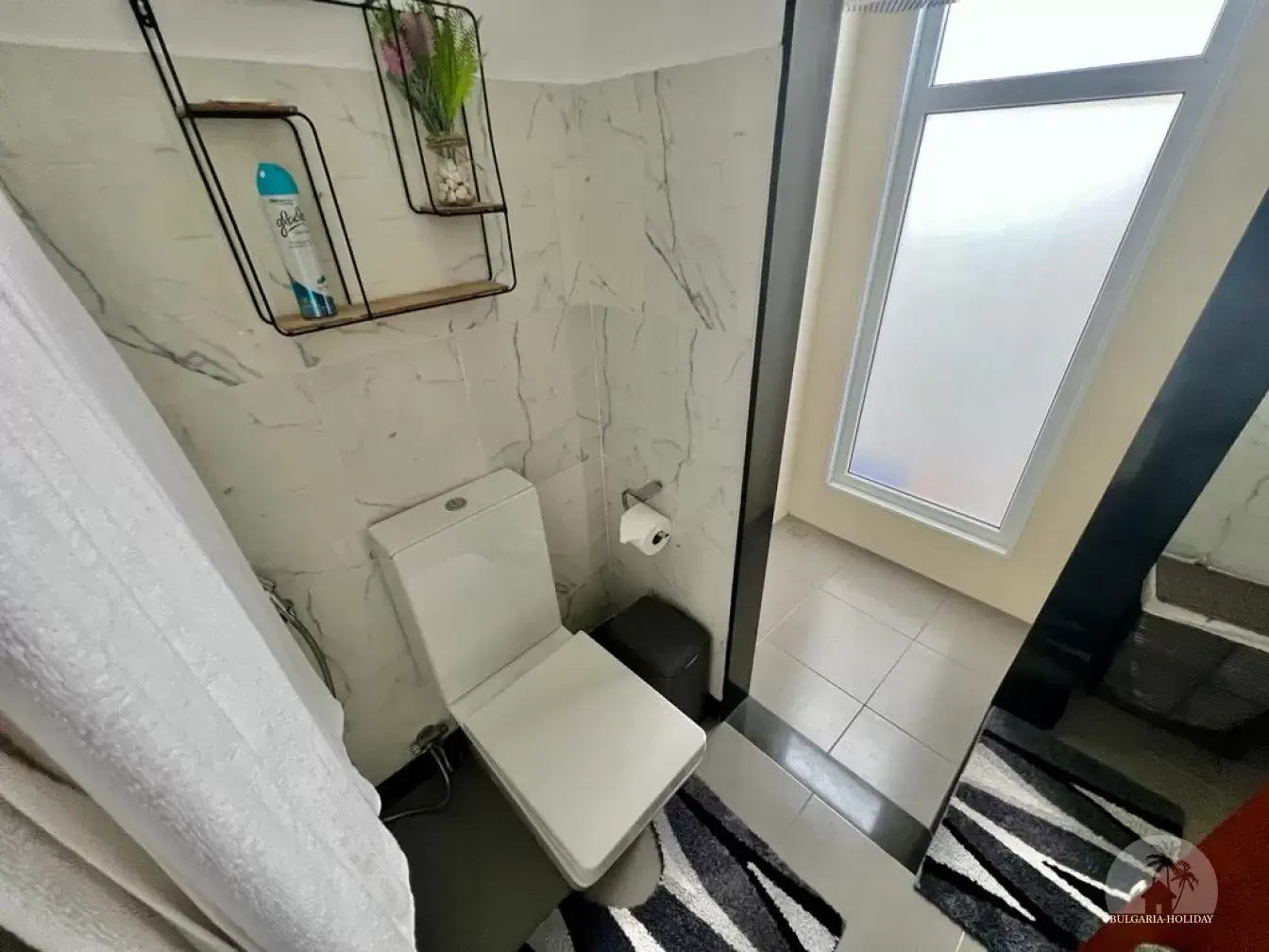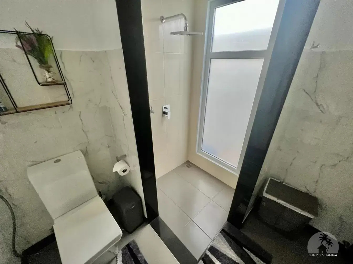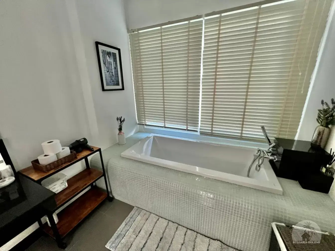 Bedroom 2: King-size bed (72*78), air-conditioned and with en suite bathroom with shower and bathtub.