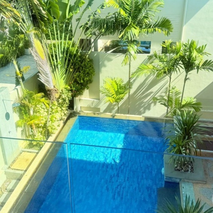Outdoors you have a large swimming pool and beautiful views of the tropical flora.